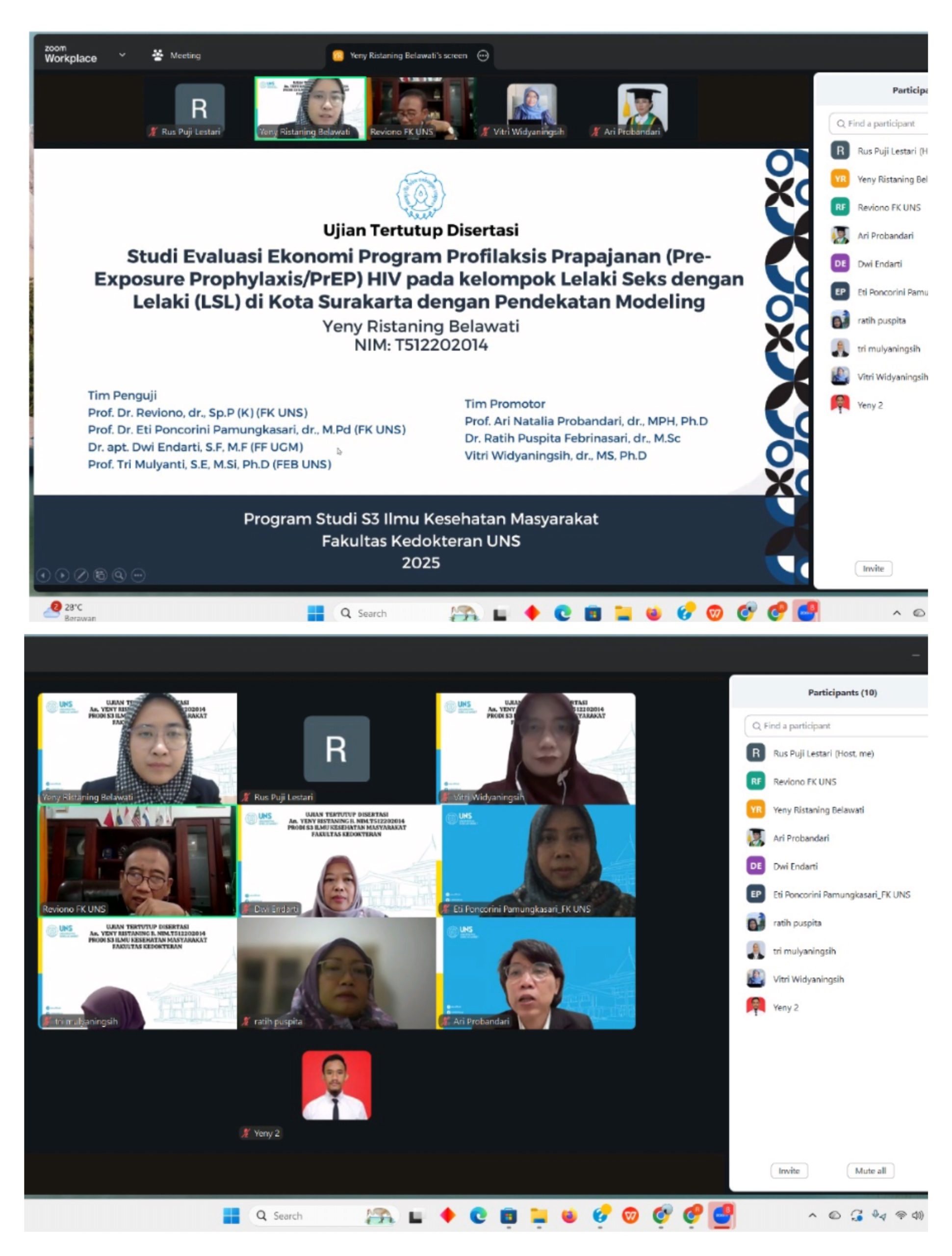 Pada Hari Rabu, tanggal 3 Desember 2025 telah dilaksanakan Ujian Tertutup Disertasi an Yeny Ristaning Belawati NIM. T512202014 dengan Judul Disertasi ” Studi Evaluasi Ekonomi Program Profilaksis Prapajanan ( Pre-Exposure Prophylaxis/PrEP) HIV Pada Kelompok LSL Di Kota Surakarta Dengan Pendekatan Modeling :.